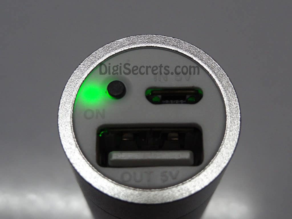The Battery pack is cylindrical and measured about 3.5 inch tall and 3/4 inch in diameter. Once side of the charger has the necessary ports. The charger has one USB out, One Micro USB in to charge the charger itself, On / off switch, LED indicator.