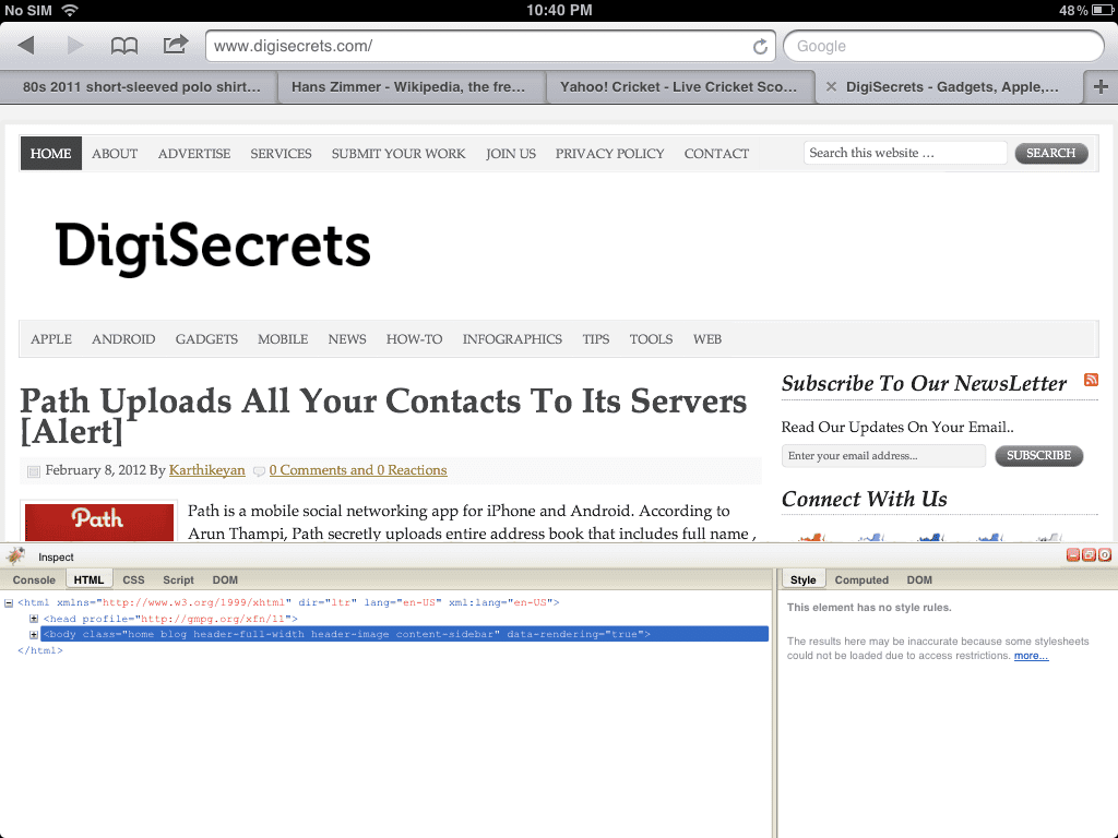 Firebug is one of the most popular web development tool used by all web developers and web designers. Firebug helps to live edit CSS, HTML and many more on a live page. Firebug comes as addon for many web browsers. Here is a tutorial on how to get FireBug for iPhone and iPad. Firebug for iPhone and iPad can be enabled via bookmarklet