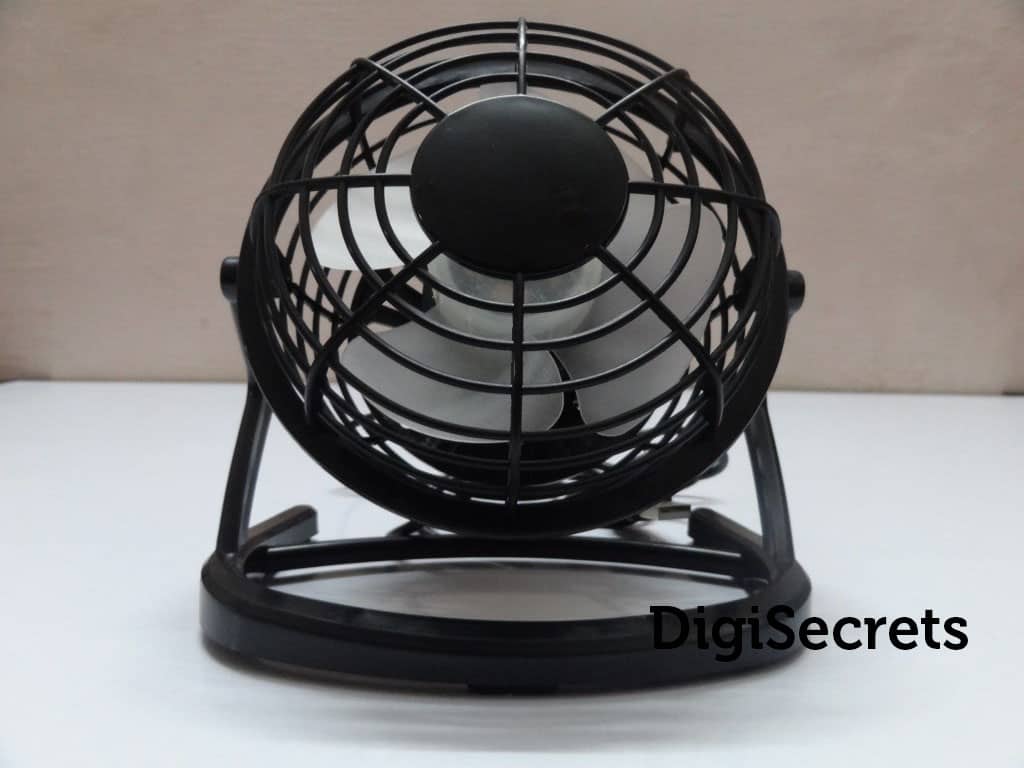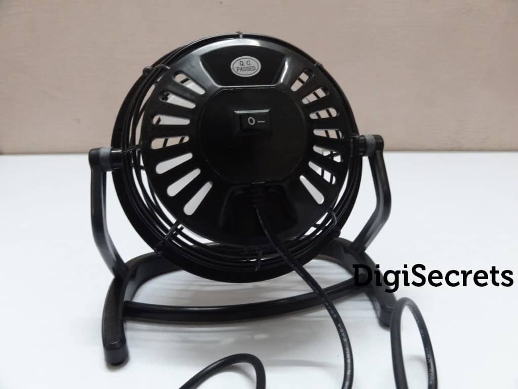 The USB mini desk fan is ultra portable and easy to use. The diameter of the fan is 14 cm and it has 4 blades for better airflow. The USB desk fan has 1 metre USB cable. There is a switch behind the fan to power on or off the fan. The USB desktop fan can be operated via USB wall adapter or with a help of portable USB charger. This fan really adds classic look to our workplace.