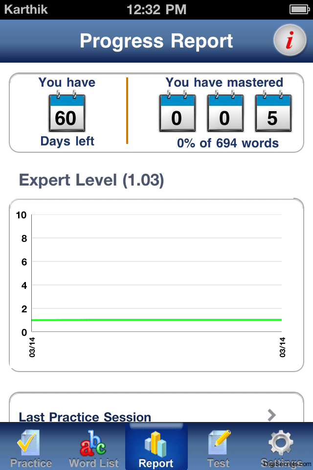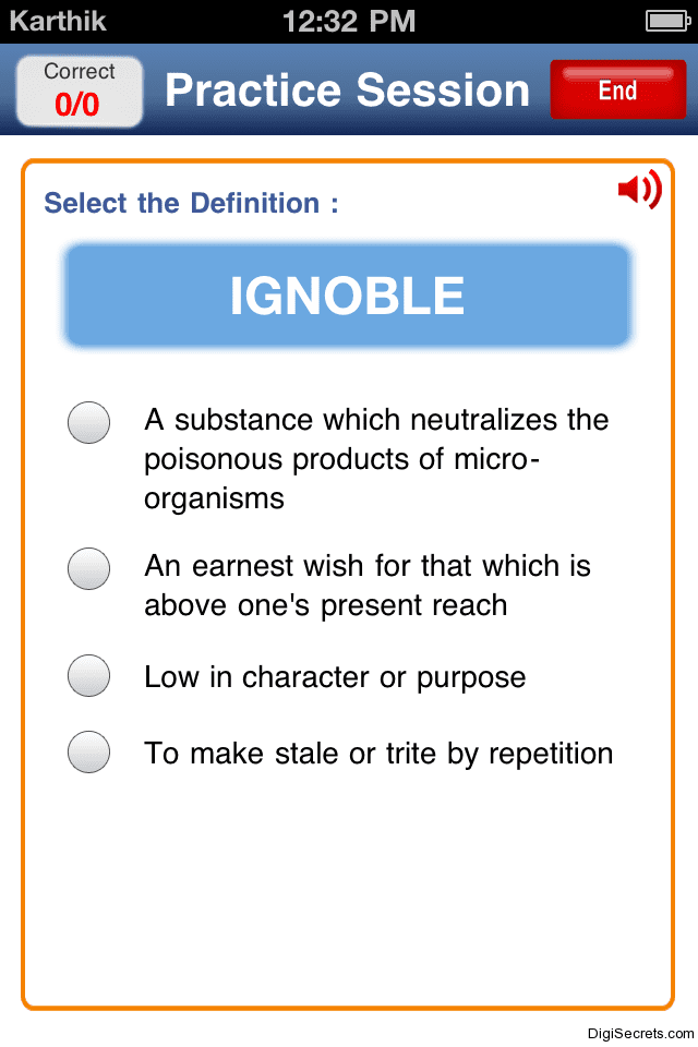 You can read all the words from the word list and you can browse through the lists of words and learn them. You have a practice mode in this the word from the list is asked and you have to choose the correct answer. The most advantage is the word is read out so that you can also hear how to pronounce the word. Apart from practicing you can also take tests.