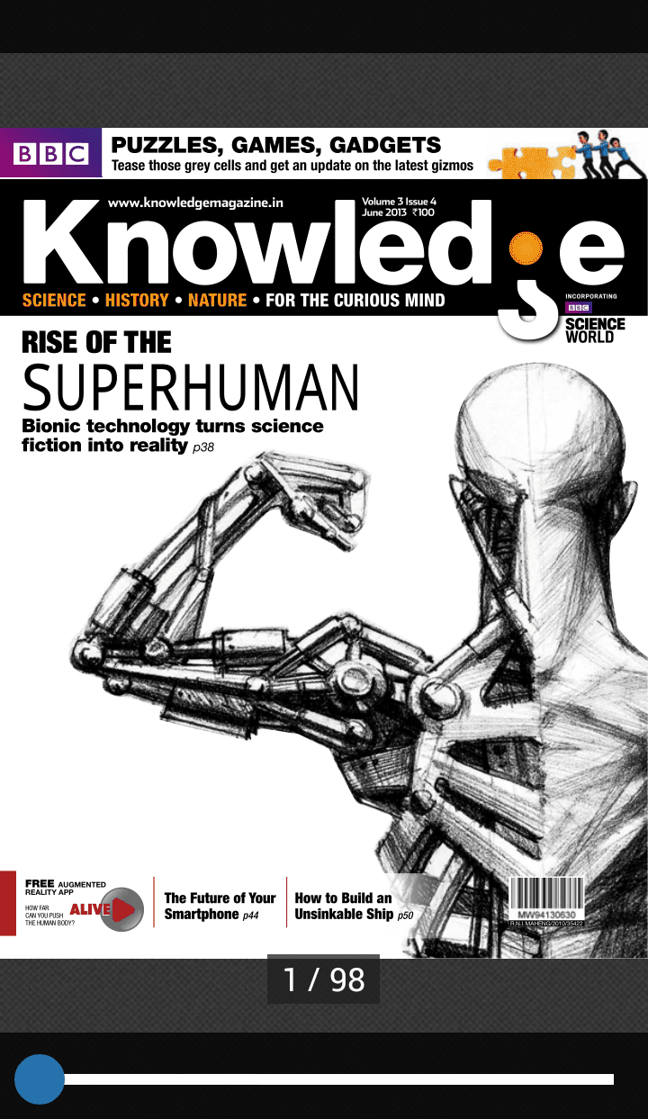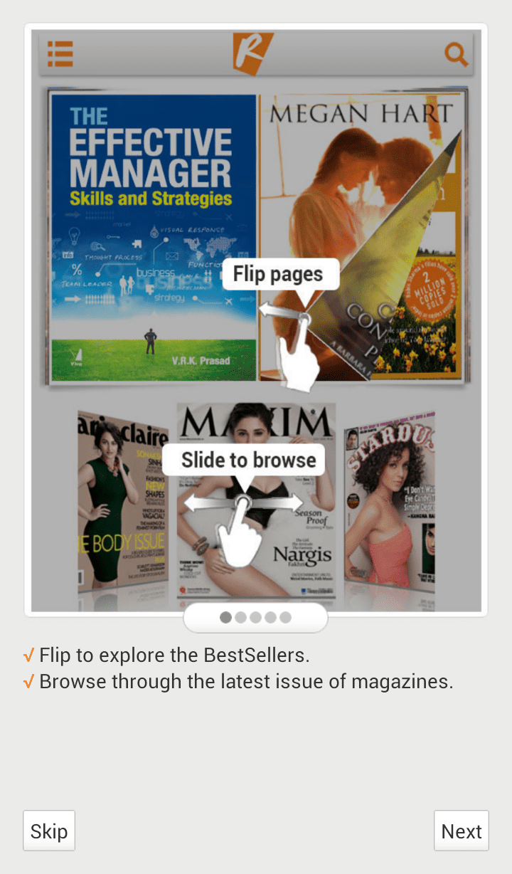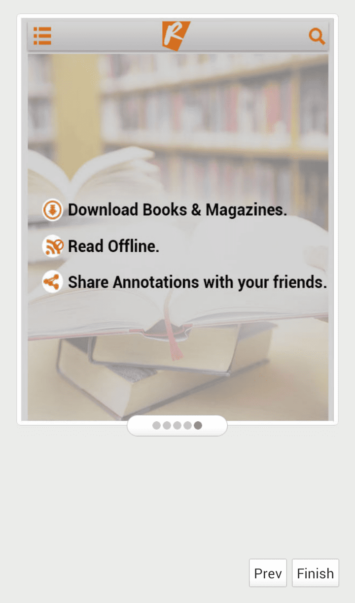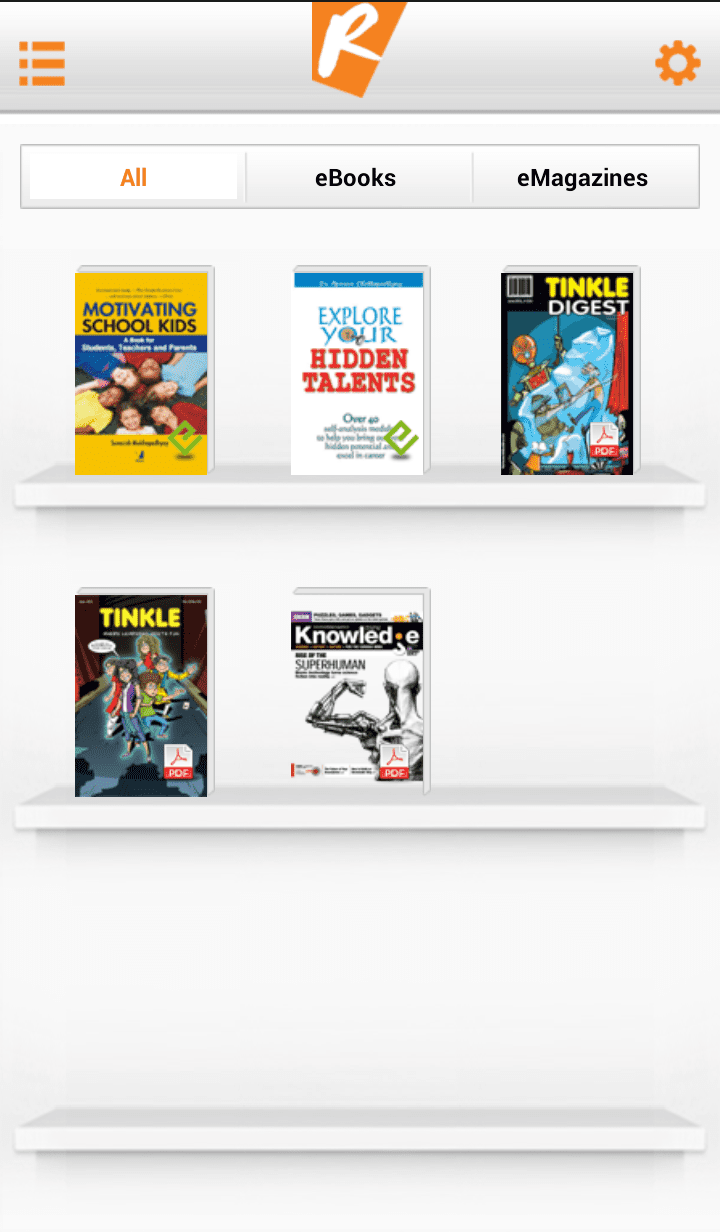 The app provides you a bookshelf, in which you can see all the books and magazines you have downloaded. There are separate tabs to see either books alone or magazines or both.