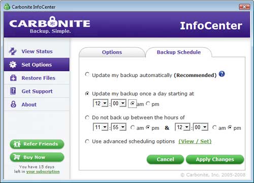3. Mozy : Mozy is one of those backup services which are simple to use, trustworthy, automatic and very easy to restore. To start this you have to visit their site and register there. Now download the software and install it. Fill up what type of files and folders for backup you want, and at last, set is to automatic option backup which will help you to backup whenever you like. This cost nothing as its free giving 2 GB of storage on one of the Mozy server. Fill up what type of files and folders for backup you want, and at last, set is to automatic option backup which will help you to backup whenever you like. This plan costs $5.99 per month for one PC giving 50 GB storage and $9.99 /month for three computers giving 125 GB storage. If you want it for some additional computers then you have to pay $2 per month extra, this will give 20 GB of additional space.