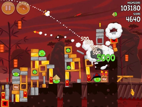 The Angry Birds are celebrating Chinese New Year by chasing after the pigs. The night sky is lighting up — and it’s not just fireworks!