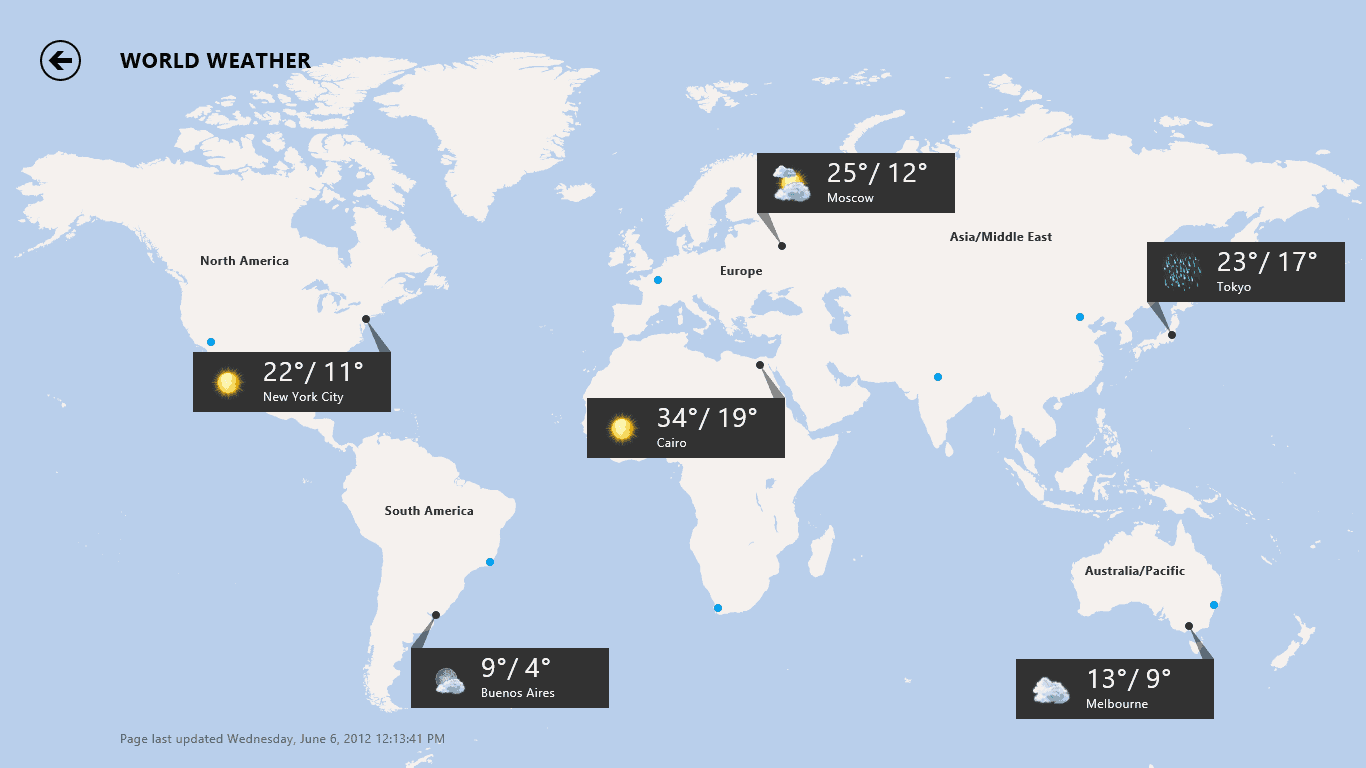 In Windows 8, with Metro Weather App you can easily view and get detailed weather report of different locations. Here is the steps to check the weather of multiple locations.