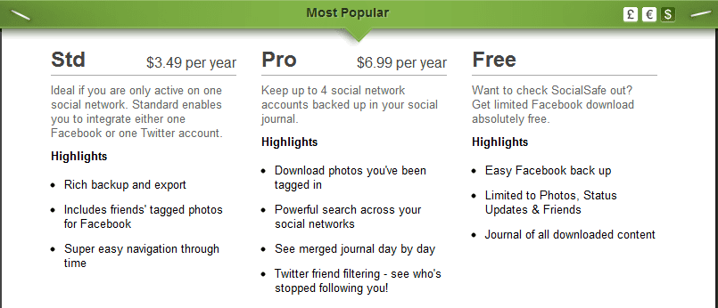SocialSafe Price Comparison