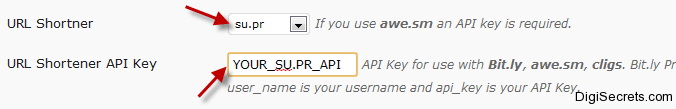 Now Goto Tweetmeme plugin -> Settings for Button -> URL Shortner Select su.pr and give your su.pr API key in URL Shortener API.
