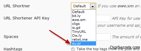 The Above mentioned Code will add su.pr to tweetmeme -> URL shorther  (You can See Clearly in Screen Shorts)