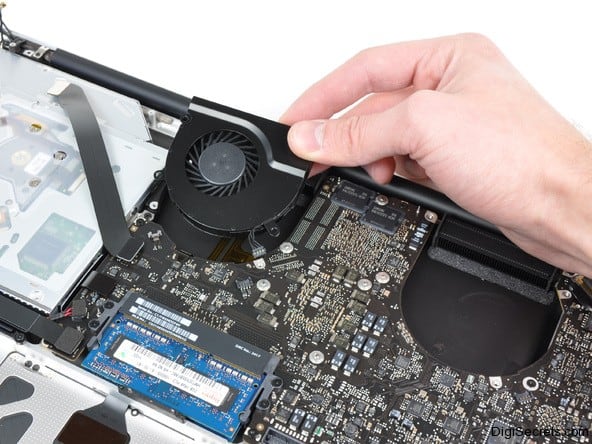 Yesterday Apple released its new MacBook Pro with lots of hardware improvements. The New MacBook Pro is 2x times faster than the old one and comes with the the new Intel Thunderbolt I/O Port. MacBook Pro will be sold at the price £1,500+ for 15-inch models. When compared MacBook Pro is little costly and here, the ifixit guys got the MacBook Pro and they striped it until the i7-processor is visible.
