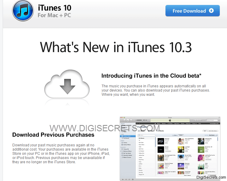 Apple will soon release  iTunes 10.3.  Which is going to feature iTunes in Cloud beta, but only for US account holders. Also the new features like the download previous purchases, Automatic downloads and shop for book on your mac or PC will be available.