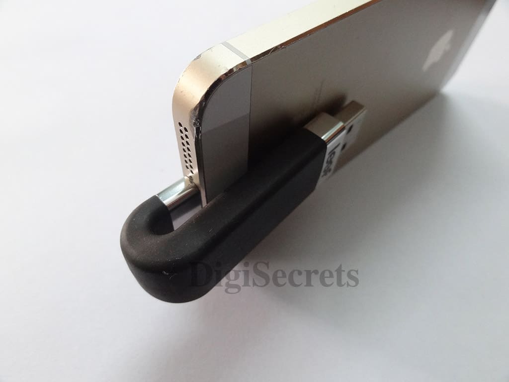Leef iBridge consist of the micro USB connector at the back. Its body is made of black TPE plastic, silicon and aluminum with a sliding coat that slides forward and backwards to reveal the USB connector at one end and the micro USB connector at the other end. It also covers both sides when not in use. Leef iBridge has a dimension of 63 x 19 x 18mm and weighs only 10g. The device contains a green LED meter that indicates you when the drive is plugged in and power is on.