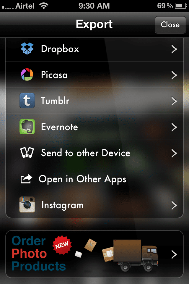 Photogene 2 one of the best photo editing app for iPhone got a huge update. Now you can order direcrly from photogene for real photo prints whihc will be delivered via postal mail. The most added feature is now you can send photos to other iOS device user via Bluetooth with the help of Photogene app