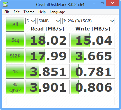 I used Crystal Disk Mark to check the read and write speed of the memory card. I used unbranded memory card reader which is connected to USB hub of the PC.