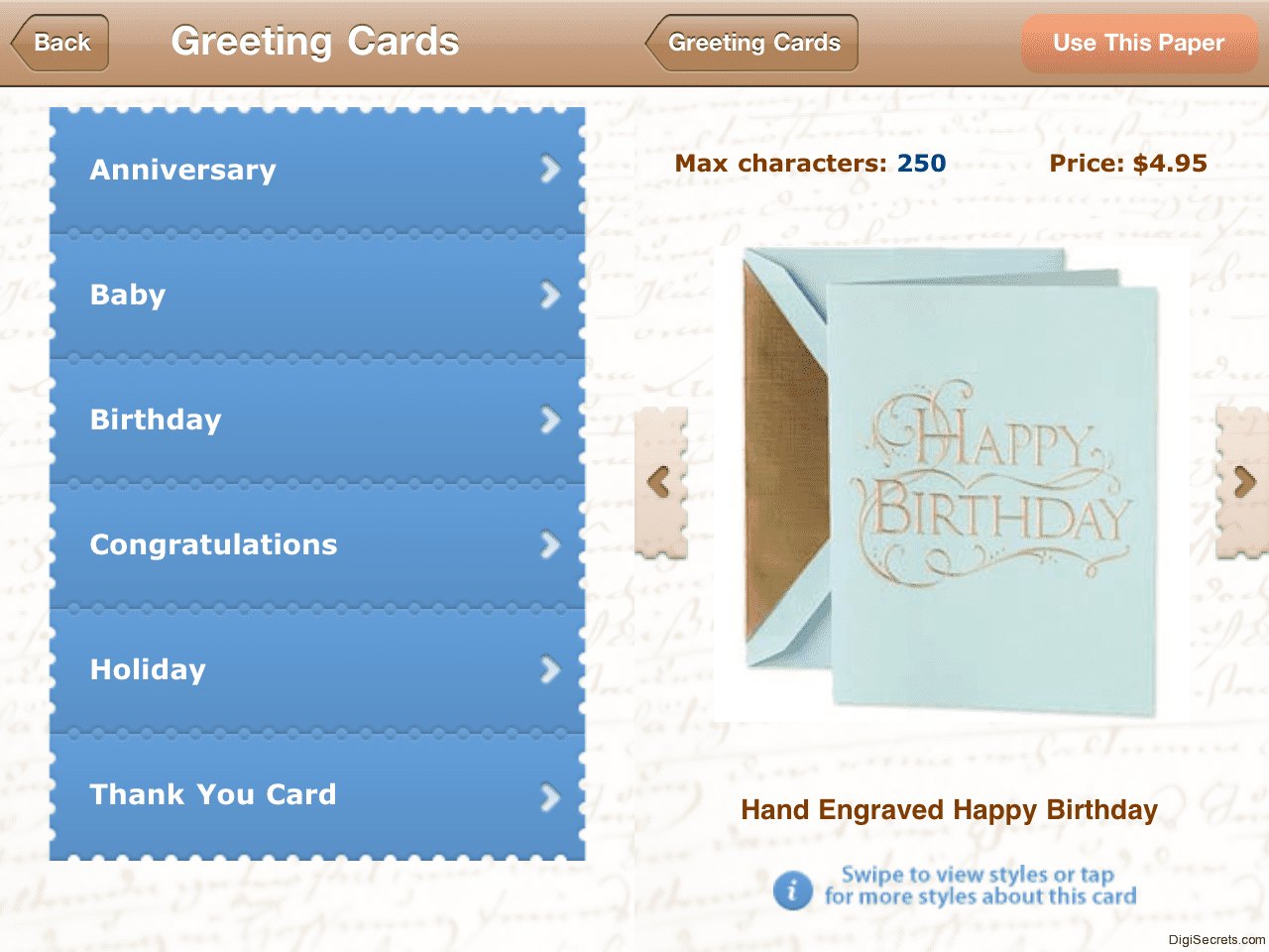 * Premium stationery and cards
