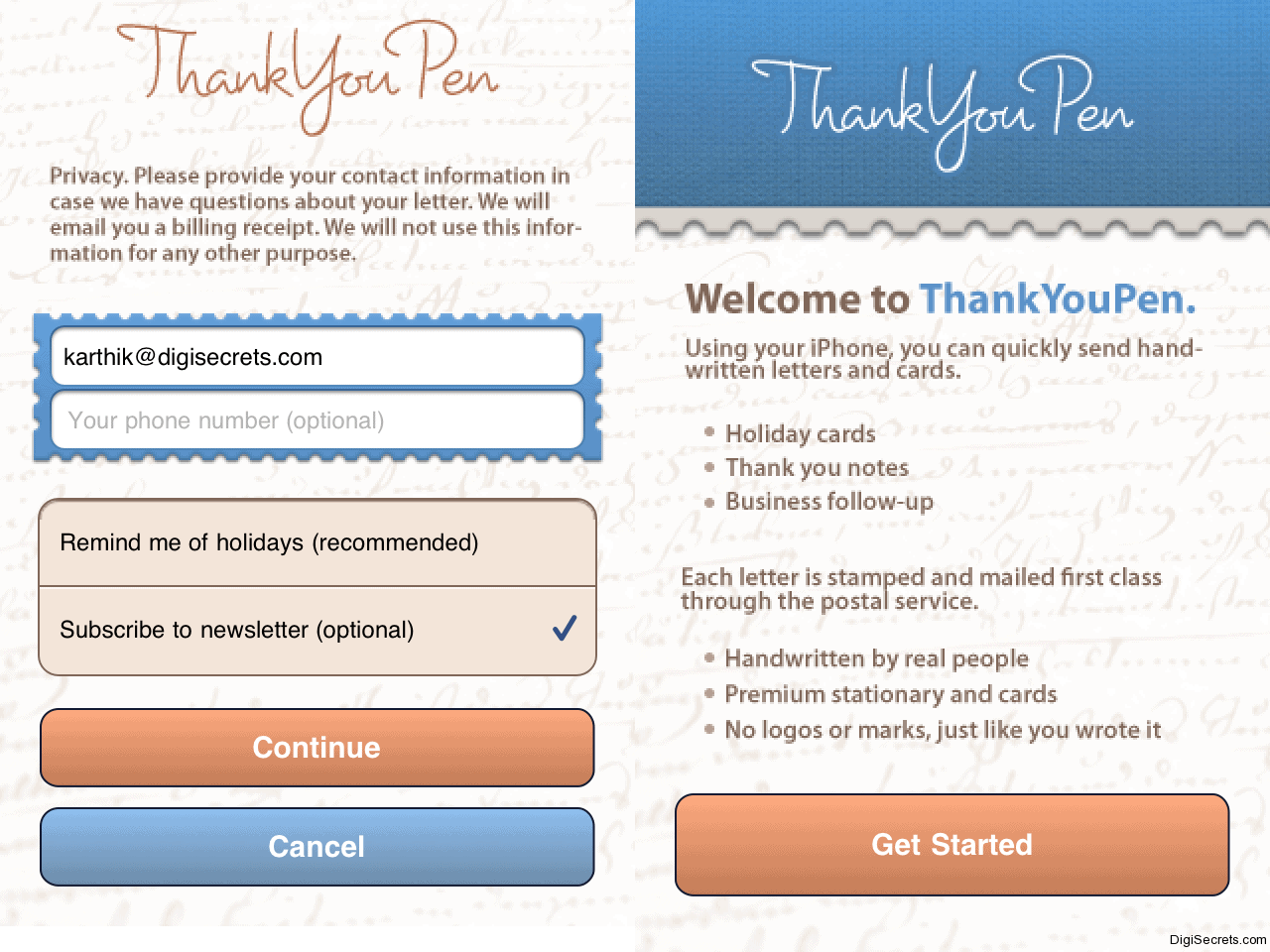 Living Outside US ? Does your loved onces stay in US ? Don’t worry, you can now easily send the hand written greeting cards to your loved ones from your iPhone using ThankYouPen app. The greeting card requested and the message to be delivered is written by real people.