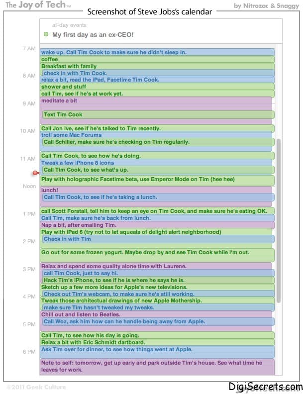 According to The Joy Of Tech folks this is steve’s calendar as an ex-CEO.